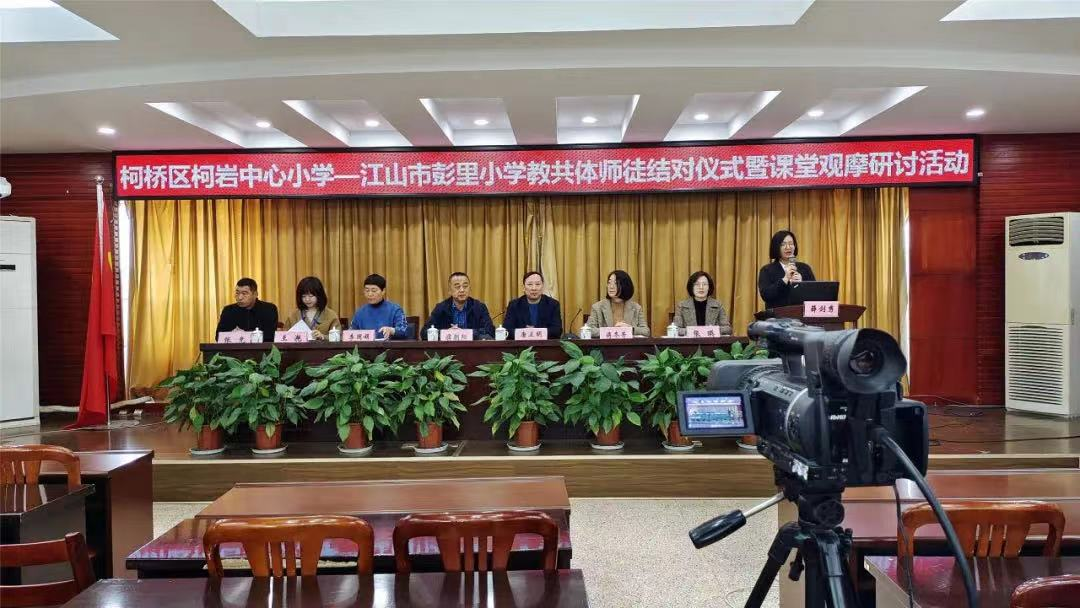 今年3月,柯岩中心小学与衢州江山市彭里小学结对,成为浙江省首批跨地区教共体之一。为促进彭里小学教师专业发展,两校开展线上线下全方位的师徒教研活动,立足课堂教学,通过师徒结对、线上线下送教、名师工作室活动、跟岗锻炼、线上线下学生交流活动等形式,分享柯岩中心小学优秀教学经验,提高彭里小学青年教师的课堂教学水平与教科研能力。在彭里小学因区域内突发疫情停课时,柯岩中心小学开设云上课堂,为彭里小学“云”上送教,实现跨地区教共体资源共享、教学共研、师生共进。