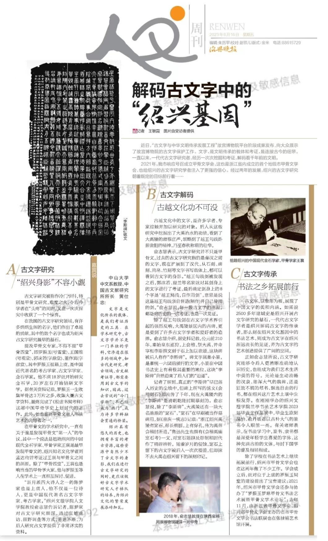 绍兴晚报6月16日:解码古文字中的“绍兴基因”