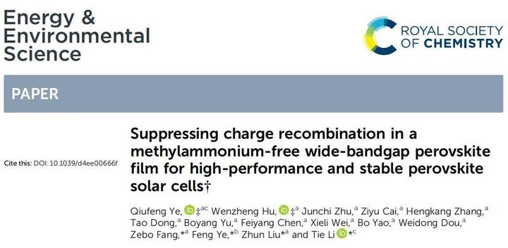近日,久久精品一区二区|久久久一区二区三区|欧美日韩视频|欧美福利视频|高清欧美性猛交xxxx黑人猛交|久久久www成人免费精品|在线观看成人网站MEMS浙江省工程研究中心团队方泽波/叶秋枫在国际能源领域顶级期刊《能源环境科学》上发表论文《抑制无甲基铵宽禁带钙钛矿薄膜中的电荷复合用于高性能稳定的钙钛矿太阳能电池》,并受邀作为封面论文进行发表。