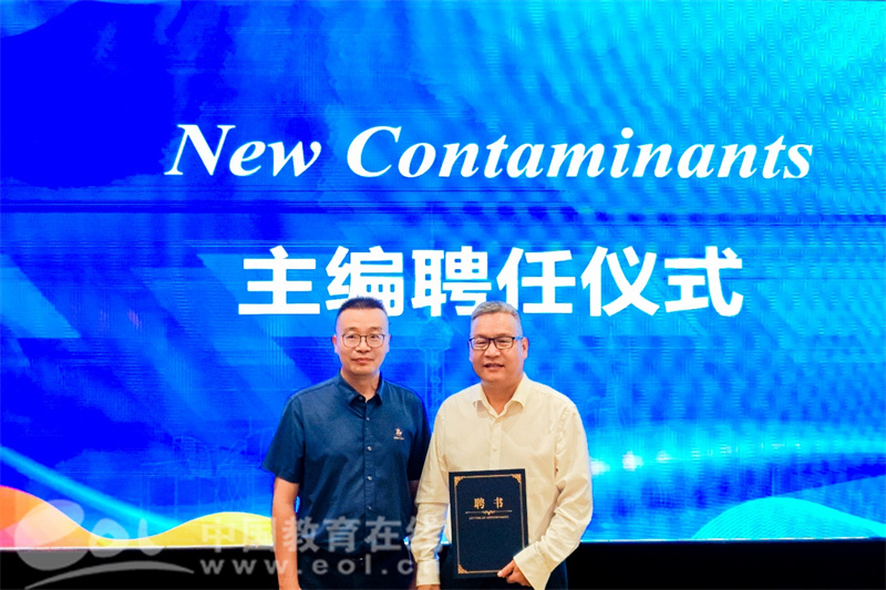 吴丰昌院士与胡云进共同为《New Contaminants》揭牌,标志着该期刊正式创刊。