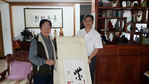 周达军书记向章传信先生介绍了创建绍兴大学的基本情况,深情感谢章先生以及陈元钜、车越乔等先生长期以来给予学校无私的帮助和支持。周书记表示,在市委、市府的领导下,在旅港乡贤的关心下,我们创建绍兴大学的步伐从没停歇。根据市委市府要求2015年我们将全力以赴创建绍兴大学,目前全校上下思想统一,责任到人,各项创建工作正在稳步推进。周书记还向章先生介绍了学校办学105年纪念活动的情况,并邀请乡贤们参加相关活动。章传信先生特地向学校办学105年书画作品展赠送了两幅他自己创作的书法作品。