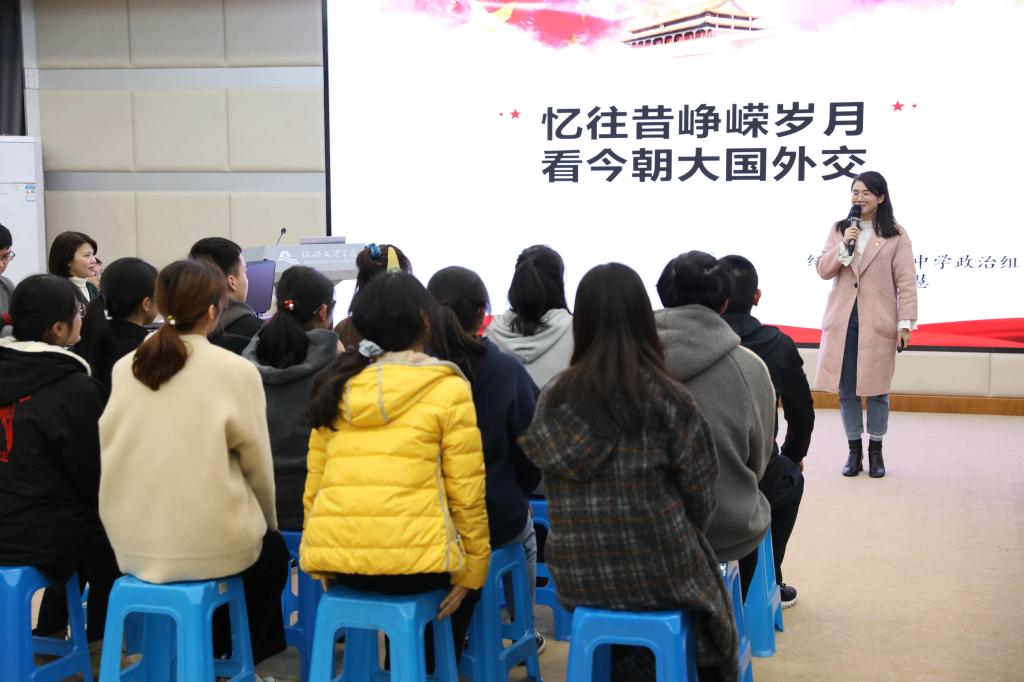 会上,四所试点学校的相关负责人围绕全面推进思政课一体化建设工作作交流发言,提出思考和建议。四所试点学校的思政课教师代表围绕“学习伟人周恩来”进行同课异构,就如何实现大中小学思政课教学目标、教学内容和教育方式的一体化进行现场教学展示。