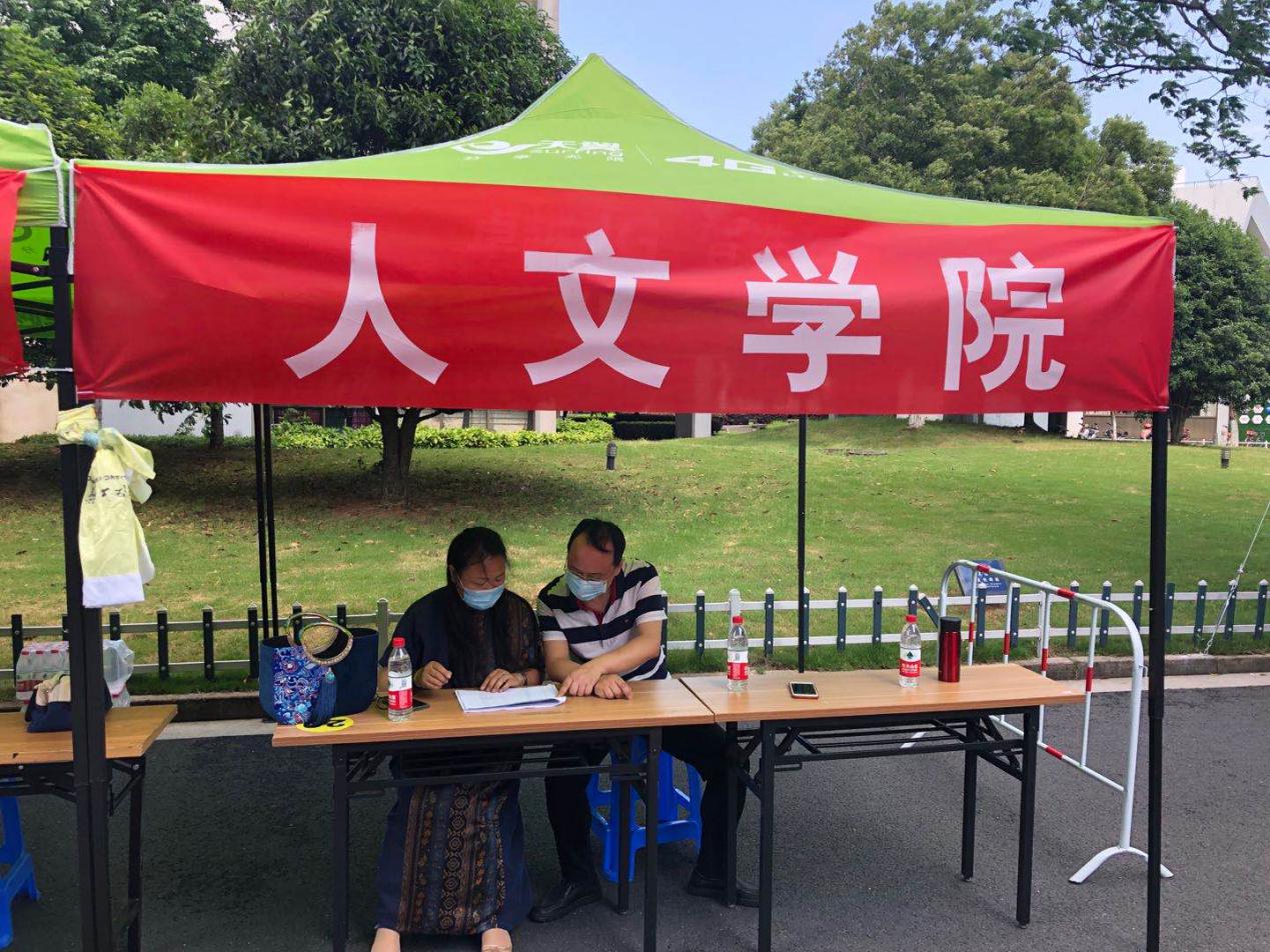 人文学院傅红英教授担任汉师171和汉师174的班主任,5月7日一早六点多,她就出发来校等候学生们归来。当天,她还特意带上了一个一直舍不得用的、第一届学生送她的蓝色手工包,配上同色系中式服,“和学生们的返校蓝码呼应,欢迎他们回来”。她在南山校区相应接待点一直等到傍晚五点多,她笑着说:“南风徐徐,我就为看他们一眼。”