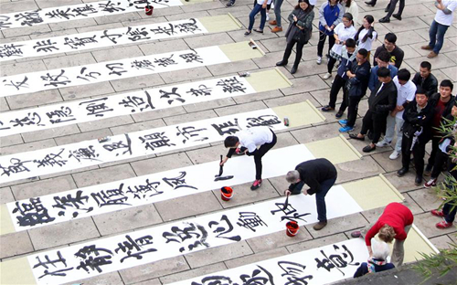 4月6日,新华社以《浙江绍兴:中外师生绍兴泼墨书写国学经典》为题,报道我校师生和瑞士日内瓦大学书法研修团的学员们一起书写国学经典《千字文》。新华网、人民网、中国网、《绍兴日报》头版纷纷予以转发。原文如下: