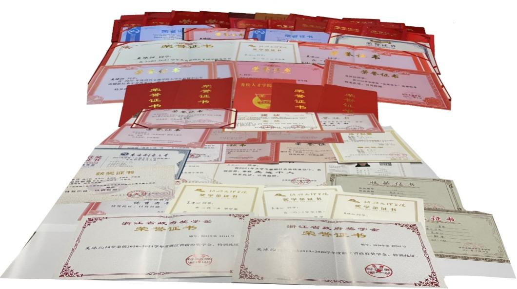 2021年7月获得浙江省第七届国际“互联网+”大学生创新创业大赛金奖,2022年9月获得全国大学生广告创意大赛国家优秀奖;获得浙江省“农信杯”乡村振兴大赛省银奖、浙江省大学生电子商务竞赛二等奖,绍兴市乡村振兴乡村策划类一等奖、市大学生乡村振兴竞赛一等奖、市大学生生态环境创意大赛一等奖等荣誉奖项。
