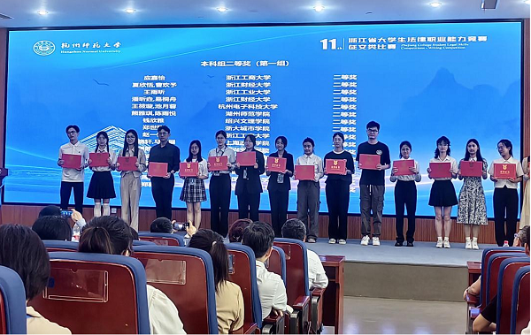 5月18日至19日,第十一届浙江省大学生法律职业能力竞赛征文类比赛现场决赛在杭州师范大学举行。本届竞赛以“涉外法治建设中的理论与实践问题”“浙江省建设法治中国示范区中的理论与实践问题”“法治中国建设中的其他重大理论与实践问题”等为主题,由浙江省大学生科技竞赛委员会主办,浙江工商大学与杭州师范大学共同承办。经过激烈角逐,我校法学院学生凭借扎实的理论功底和出色的答辩表现斩获佳绩,共获得二等奖2项、三等奖5项。